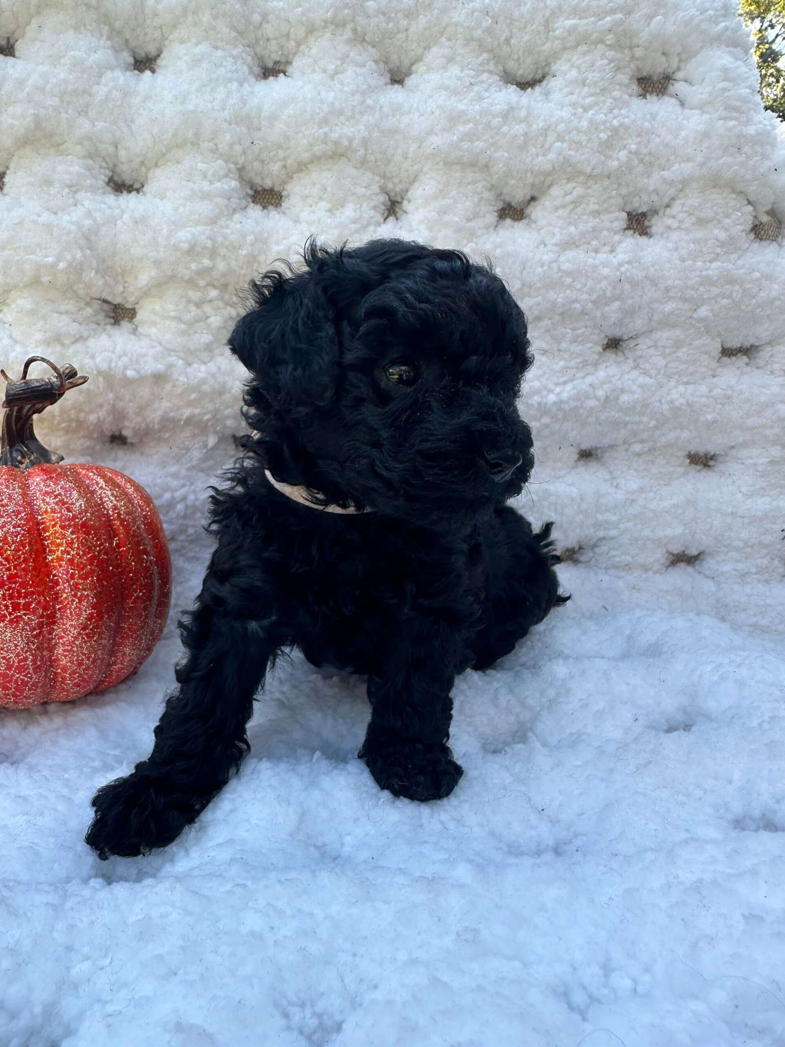 We are excited to announce the arrival of a stunning black female toy poodle puppy, born on September 21, 2025. She is from our cherished poodles, Chloe and Cash, who are known for their loving personalities, intelligence, and excellent health.